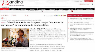 1. DISCIPLINA, POLICIAS: Ayer doña Meche sancionó drásticamente a un grupo de policías. En un caso, pensamos que la sanción era correcta, pues se trataba de dos agentes policiales que estaban manejando ebrios, se habían escapado de la comisaría y habían causado un accidente de tránsito. Separación inmediata y buenos reflejos de la Ministra.