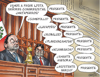 El más notorio para la prensa y la ciudadanía han sido la serie de escándalos parlamentarios que, por lo general, se centran en las irregularidades en las contrataciones y tratos a los trabajadores de los despachos de los congresistas, así como en sus inconductas personales, hecho reflejado en la caricatura de Carlín que acompaña este post. Creo que a todos nos indignan estas actitudes, que siguen marcando en un gran sector del país la necesidad de no aumentar el número de parlamentarios, ante la baja calidad de los mismos.