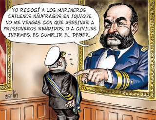 El primero de ellos, que esta mañana volví a leer luego de mucho tiempo, es la carta que Grau envía a Carmela Carvajal viuda de Prat, esposa del máximo héroe de la marina chilena, Arturo Prat. El marino chileno había perecido en el Combate de Iquique, acaecido el 20 de mayo de 1879. La misiva conmueve por el honor desplegado por el héroe peruano:
