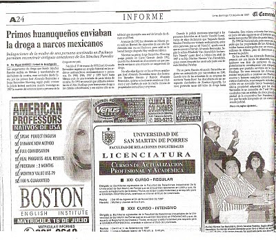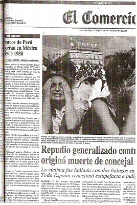 El domingo 13 de julio de 1997, el periodista Miguel Ramírez - aludido tangencialmente en este caso y actual jefe de la Unidad de Investigación del diario El Comercio - publicó en el diario que ha cumplido 170 años una nota titulada “Narcos de Perú operan en México desde 1980″, que apareció en las páginas 1, 24 y 25 del cuerpo A de la edición de ese día. Pueden ver a continuación las imágenes escaneadas del reportaje, que también se encuentran en La Azotea del Tercer Piso: